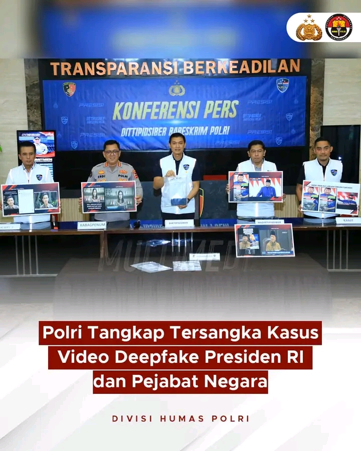 Direktorat Tindak Pidana Siber Bareskrim Polri berhasil mengamankan tersangka AMA (29) atas kasus video deepfake Presiden RI Jenderal TNI (Purn.) H. Prabowo Subianto dan sejumlah pejabat negara,Jumat/24/25.