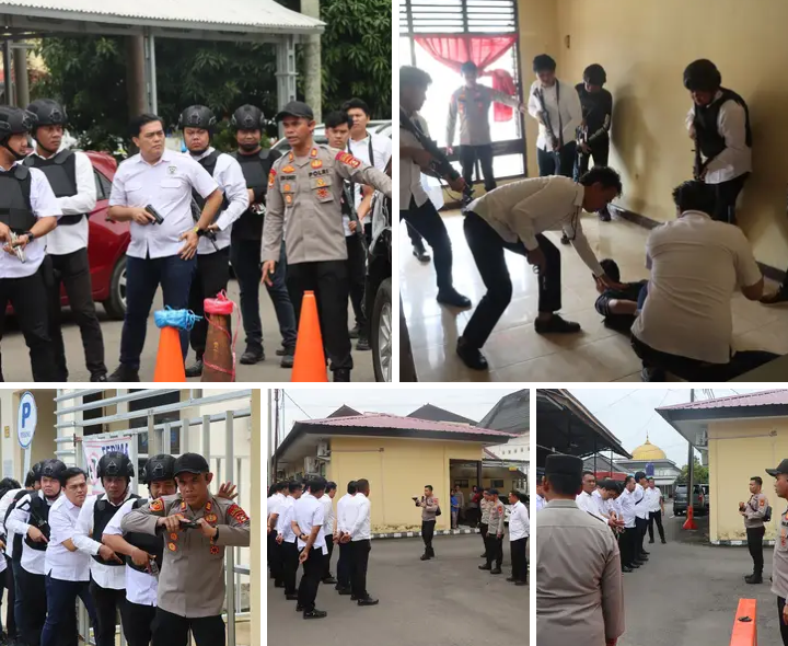 Simulasi ini dilakukan dengan perlengkapan lengkap, termasuk senjata dan tameng, guna meningkatkan kesiapan anggota dalam menghadapi situasi di lapangan.