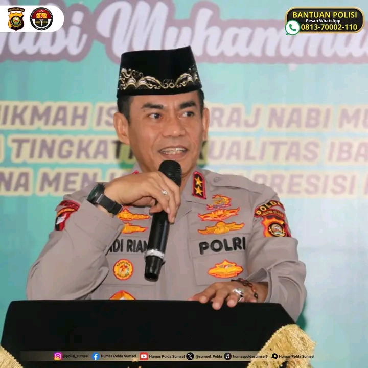 Penegasan ini disampaikan langsung oleh Kapolda Sumsel, Irjen Pol Andi Rian R Djajadi SIK, MH, usai melaksanakan peringatan Isra Mi’raj 1446 H di Masjid Assa’adah Mapolda Sumsel, Kamis (6/02/2025).