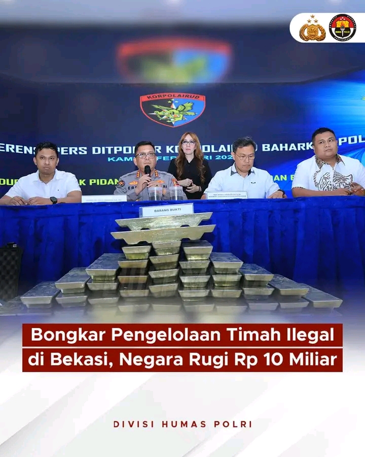 Subdit Gakkum Ditpolair Korpolairud Baharkam Polri berhasil mengungkap kasus pengelolaan timah ilegal di Kota Bekasi, Jawa Barat
