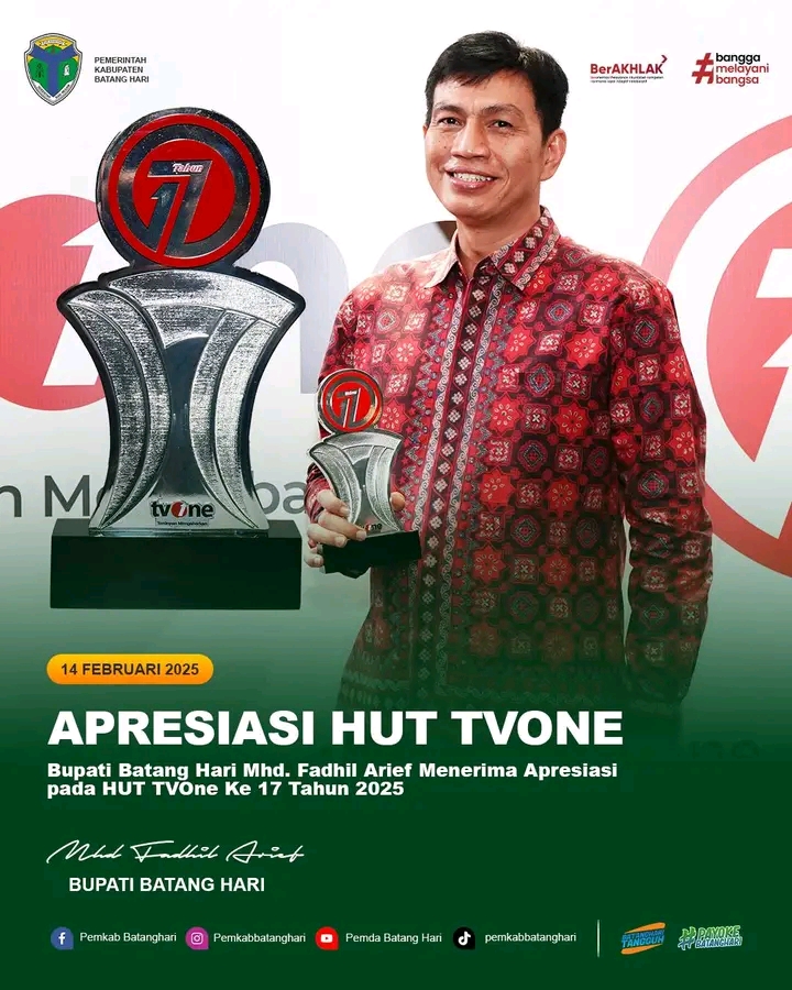 Kejutannya untuk Provinsi Jambi bahkan Sumatera salah satu Kepala Daerah yang selalu berpenampilan energik, yaitu Bupati Batang Hari Mhd. Fadhil Arief, menjadi satu-satunya Kepala Daerah di Indonesia yang menerima apresiasi dari HUT Spesial TV ONE yang ke 17 tahun ini dan kegiatan ini disiarkan secara live di TV ONE.