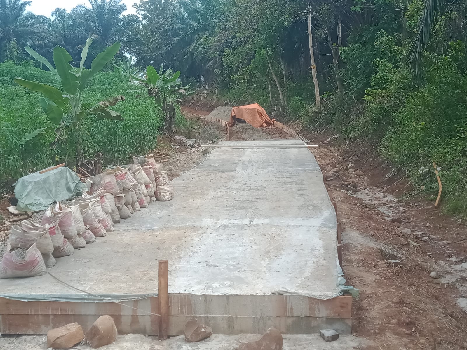 lokasi pembangunan rigid beton tersebut di dusun 02 yang merupakan salah satu pemukiman penduduk Desa Hujan Mas.