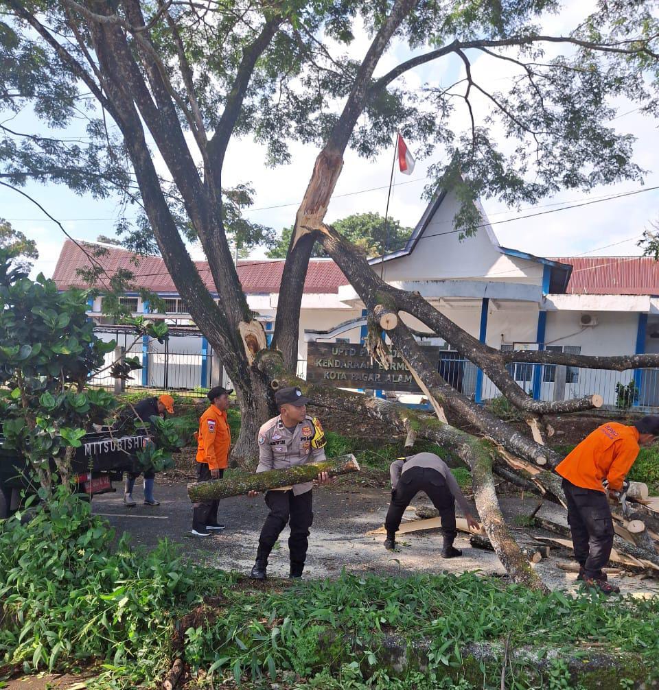 Cepat Tanggap, Polres Pagaralam Bersama BPBD Evakuasi Pohon Tumbang