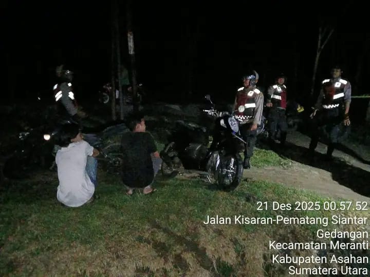 newssurya.com — Kisaran barat. Polres Asahan melalui presisi Sat samapta bergerak cepat menindak lanjuti laporan masyarakat terkait adanya aktivitas balap liar, yang meresahkan warga dijalan besar Gedangan Kecamatan kisaran barat, kabupaten Asahan barat, Minggu 21/12/2025 dini hari.