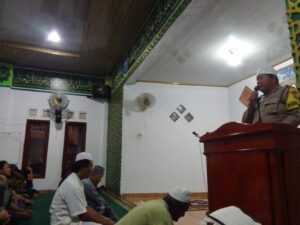 Sholat Tarawih dengan Warga, Bhabinkamtibmas Polsek Sungkai Selatan Beri Himbauan Kamtibmas