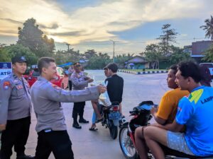 Semarak Ramadhan 1446 H, Polsek Tulang Bawang Tengah Bagikan Takjil di depan Mako Kepada Masyarakat Pengguna Jalan yang melintas